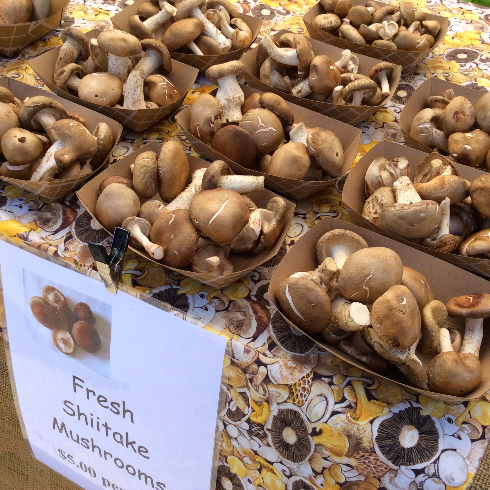 | Fresh shiitake mushrooms from my local Farmer's Market. |